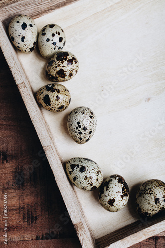 Fototapeta premium Quail eggs in wooden box