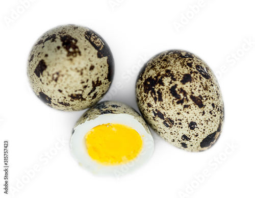 Fototapeta premium Quail Eggs isolated on white background (selective focus; close-up shot)