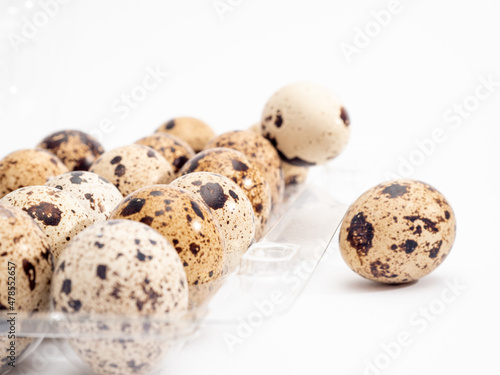 © Jakob, Fototapeta premium Quail eggs isolated. Quail eggs isolated on white background.