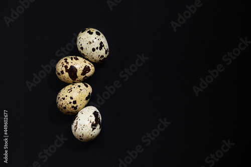 Obraz premium quail eggs on a black background with copy space