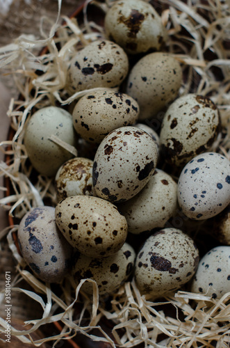 © Евгения Соломенная, Obraz premium quail eggs on a clay plate