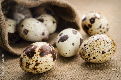 Fototapeta premium quail eggs on a fabric background