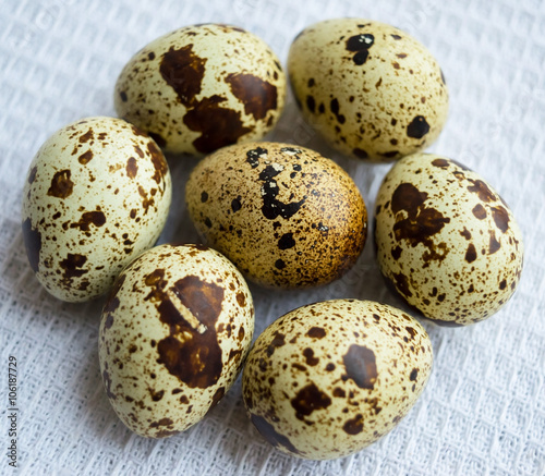 Obraz premium Quail eggs on a wite napkin