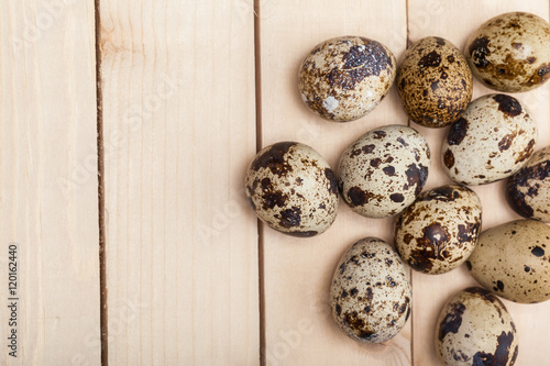 Obraz premium Quail eggs on a wooden table