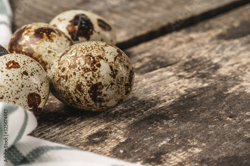 Obraz premium Quail eggs on a wooden table