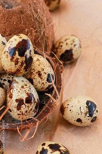 Fototapeta premium quail eggs on wooden table