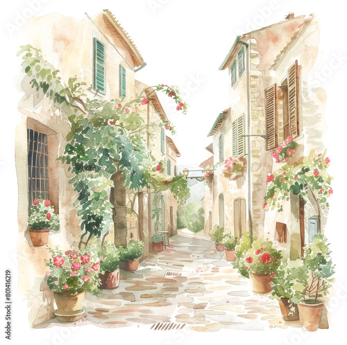 Fototapeta premium Quaint street watercolor in a Tuscan village