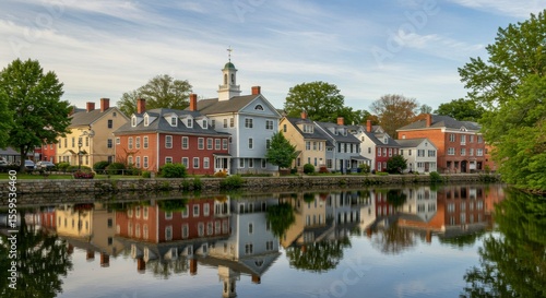 © Outkast, Fototapeta premium Quaint town reflected in still water