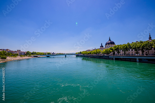 Obraz premium Quais du Rhône et Grand Hôtel-Dieu de Lyon