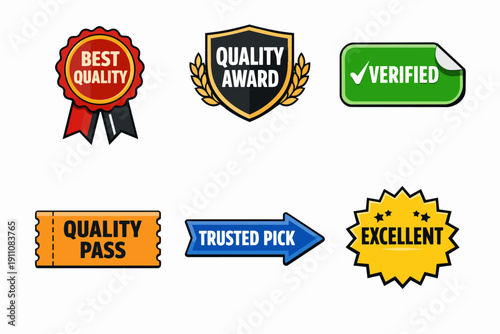 Obraz premium Quality badges, labels, and awards collection showing trust, excellence, and verification