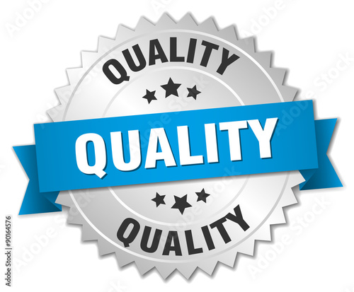 Fototapeta premium quality 3d silver badge with blue ribbon
