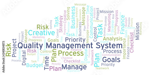 Obraz premium Quality Management System word cloud, made with text only.