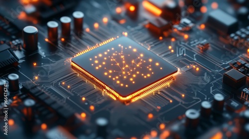 Fototapeta premium Quantum AI research, glowing quantum states, futuristic computing lab,...