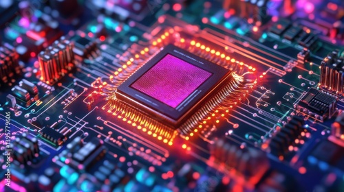 © SepazWorks, Fototapeta premium Quantum Chip Glowing Under Intricate Holographic Circuits