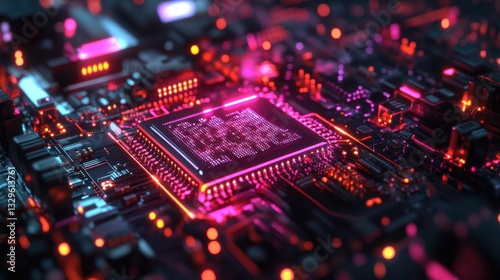 © SepazWorks, Fototapeta premium Quantum Chip Glowing with Dynamic Binary Qubit Projection