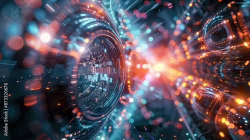 © Johannes, Obraz premium Quantum computer, qubit network, ultra modern computer technologies,