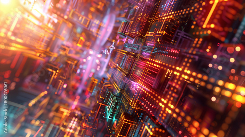 Fototapeta premium Quantum computing: illustration of a computer operating on quantum principles