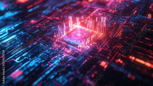 © SepazWorks, Obraz premium Quantum Core Glowing under Dynamic Light Streams