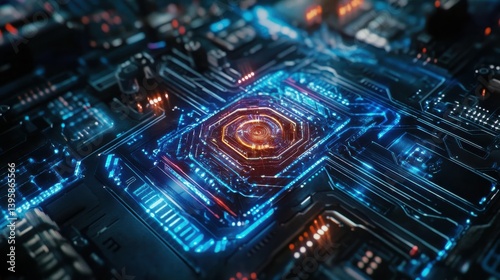 Fototapeta premium Quantum Core Glowing Under Intricate Holographic Pattern