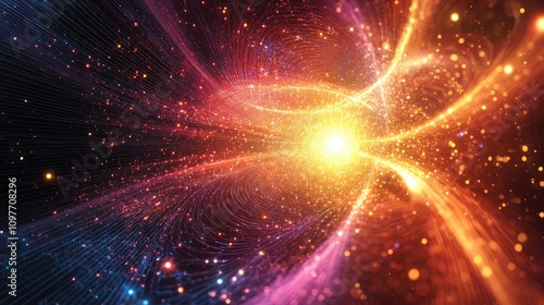 Obraz premium Quantum data particle effect with small, clustered light points symbolizing...