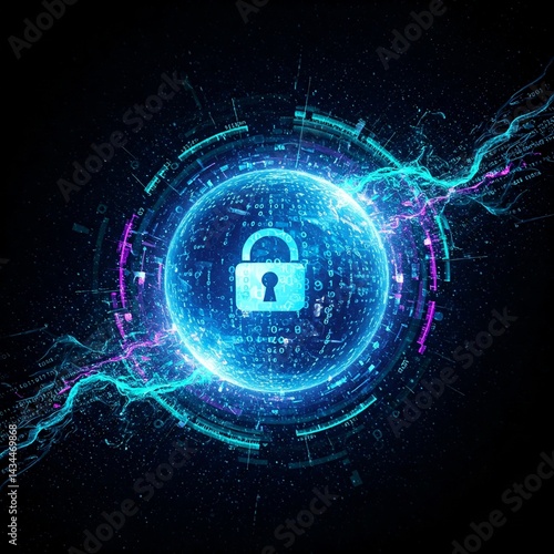 Obraz premium Quantum Encryption Sphere Spinning Code High Security Isolated on White