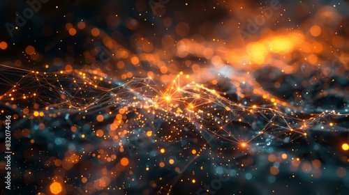 © Dee, Fototapeta premium Quantum Entanglement Visualization: Depict the complex phenomenon of quantum entanglement with intertwined, luminous threads connecting distant points in space. This striking visual representation