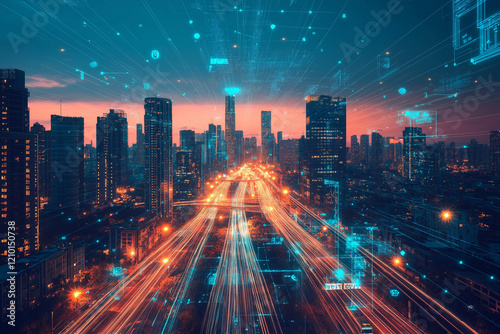 © Nipuna, Fototapeta premium Quantum Metropolis: A City of Light and Innovation