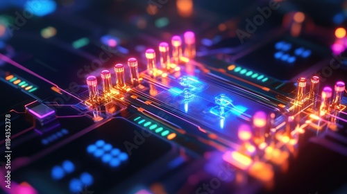 Fototapeta premium Quantum network infrastructure with illuminated quantum circuits, entangled...