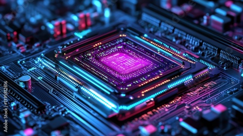 © SepazWorks, Obraz premium Quantum Processor Glowing with Binary Circuits