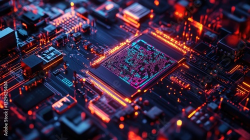 © SepazWorks, Obraz premium Quantum Processor Glowing with Swirling Qubit Grids