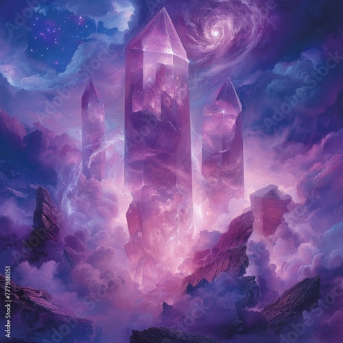 Obraz premium Quantum Quartz towers amidst Velvet Vortex mists