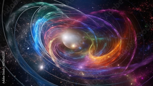Obraz premium Quantum space explosion, colorful lines abstract scientific visualization,...