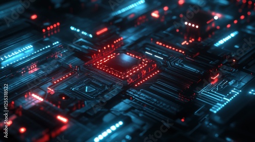 © SepazWorks, Obraz premium Quantum System Glowing with Binary Qubits and Holog