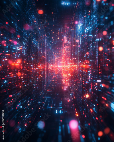 © Dzmitry, Obraz premium Quantum teleconference links cities through digital pathways