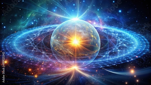 Obraz premium Quantum Universe and Energy Field: Digital Art of Cosmic Structures and...