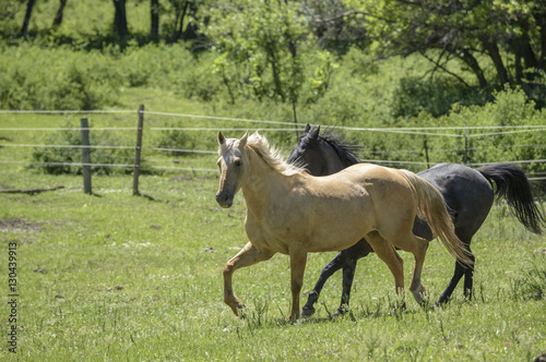 © Mark J. Barrett, Fototapeta premium Quarter Horse mares run in pasture