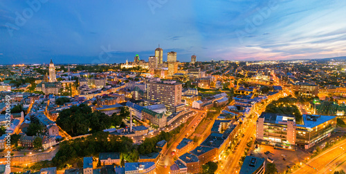 © Mircea Costina, Obraz premium Quebec City at blue hour, aerial view