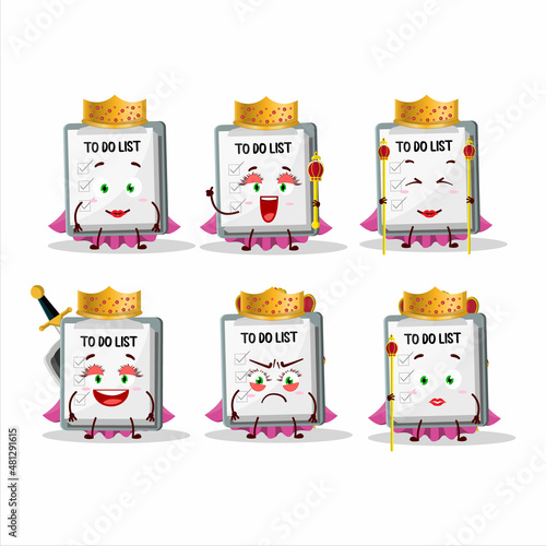 Fototapeta premium Queen and her magic clothes cartoon of paper sheet with clipboard wearing tiara
