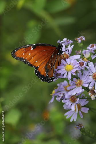 Fototapeta premium Queen butterfly on New England aster flowers