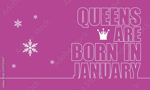 © JEGAS RA, Naklejka premium Queens are born in january text. Motivation quote for celebration card. Thin line style