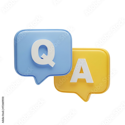 © Ashabe Kahf, Fototapeta premium Question and answer speech bubbles representing communication and information exchange 3d icon isolated on transparent background png
