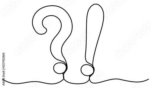 © Віталій Баріда, Obraz premium Question and exclamation mark continuous one line drawing. Vector illustration isolated on white.