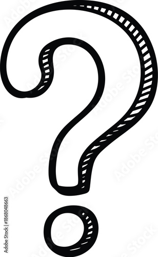 Fototapeta premium Question Mark Doodle Sketch Inquiry Symbol on White Background Hand Drawn Line Art Icon Graphic Element for Presentations Education Website Design Help Support Assistance FAQ Information Concept