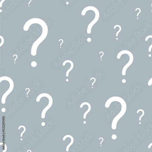 © Tupungato, Naklejka premium Question marks seamless vector background. Question mark texture for online survey or quiz. White on grey color.