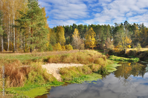 © skostin1951, Fototapeta premium Quiet autumn on the river