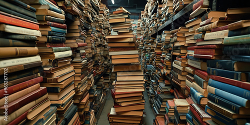 Fototapeta premium Quiet Calamity: A library, its stacks of books reaching for the ceiling, yet devoid of patrons and the hum of study.