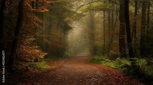 © mirifadapt, Fototapeta premium quiet forest path, lit only by the soft glow