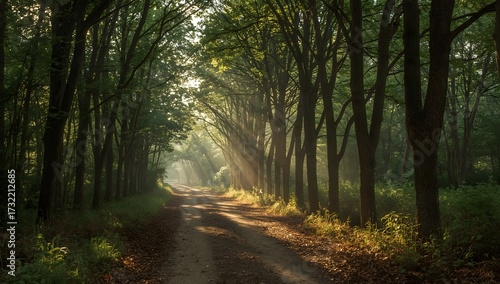 © Max Zabelenkov, Obraz premium Quiet Forest Path with Dappled Sunlight