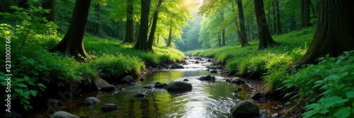 Obraz premium Quiet forest stream meandering through the woods, water, nature, foliage