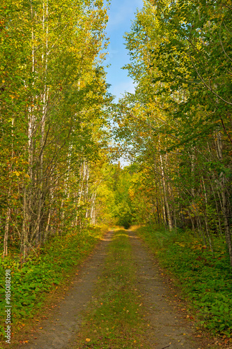 © wildnerdpix, Fototapeta premium Quiet Road Heading Into the Forest
